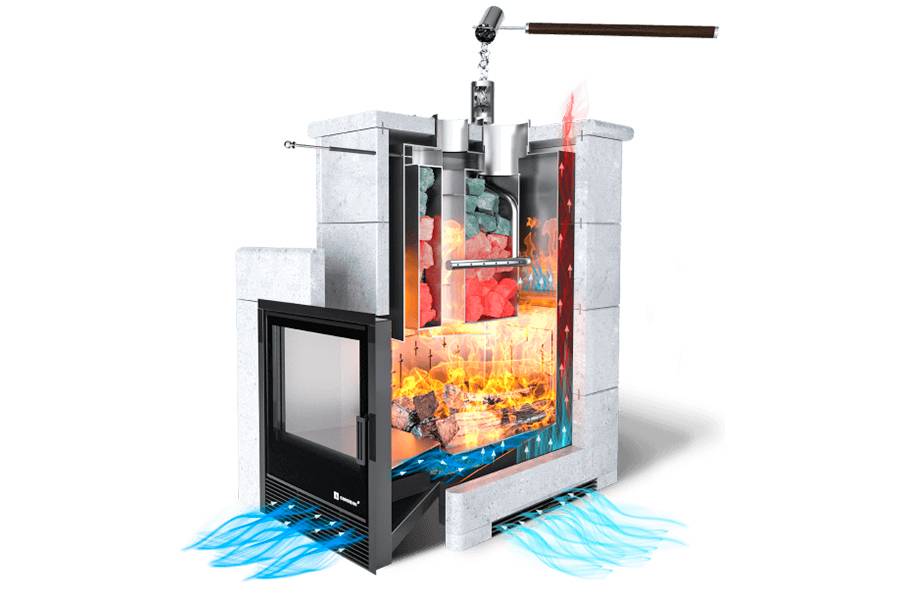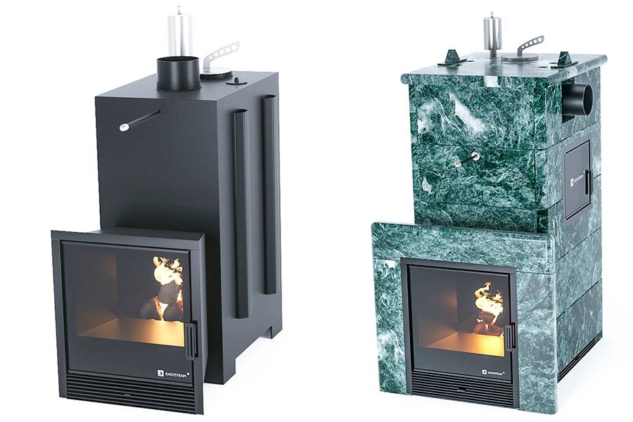 Популярная дровяная печь с системой двойного парообразования, которая дает много легкого пара.