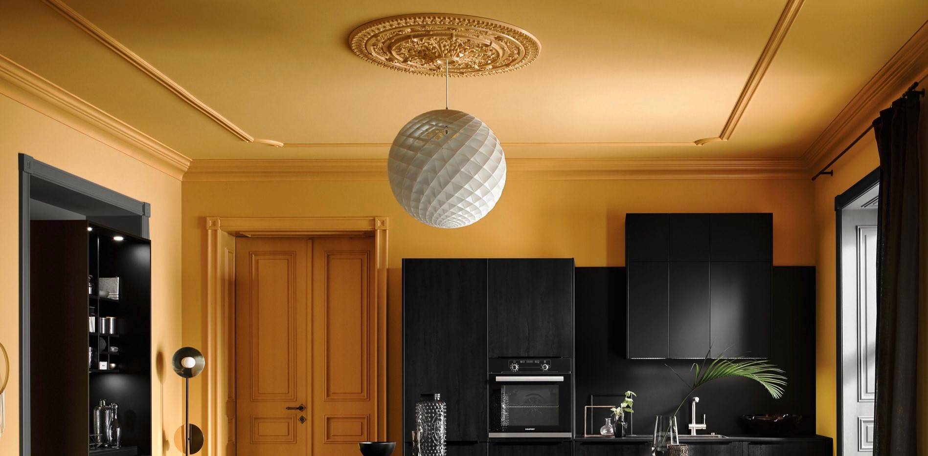 Широкое использование зеркал создает оптическую иллюзию, что позволяет помещению казаться больше, чем оно есть на самом деле. И напротив, более тёмные оттенки заставляют его казаться гораздо меньше.