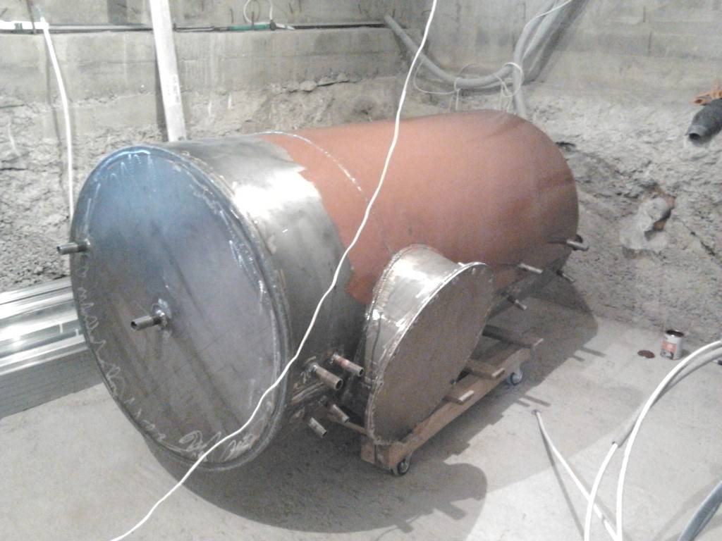 Простой теплоаккумулятор можно самостоятельно сделать из стальной бочки. Вместо нее можно сварить емкость нужного размера из листа нержавеющей стали. Лучше использовать материал толщиной не меньше 2 мм.