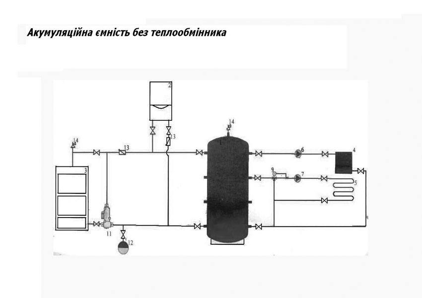 При наличии теплоаккумулятора эта схема будет выглядеть иначе: