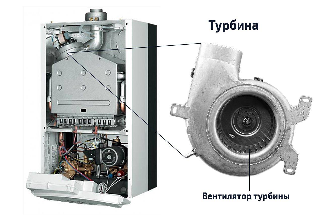 Вентилятор (турбина) обеспечивают отведение дыма за пределы дома без применения вытяжных дымососов, создавая избыточное давление (турбонаддув).