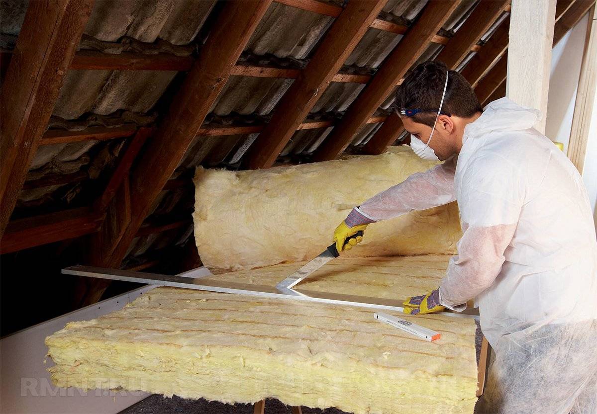 Чтобы начать утепление кровли минеральной ватой, нужно порезать (по необходимости) её так, чтобы она подходила по размерам к межстропильному расстоянию.