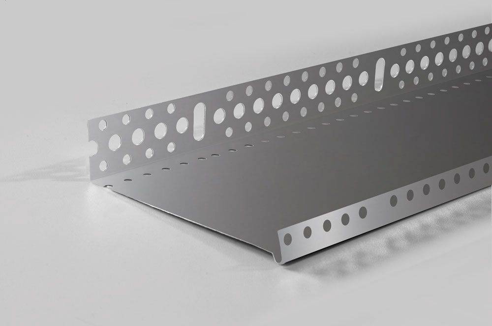 Цокольный профиль представляет собой П-образную планку, одна полочка которой ниже другой. На более высокой имеется перфорация, посредством которой осуществляют монтаж алюминиевой планки к стене здания. Вторая полочка тоже имеет отверстия и оснащена капельным изгибом, который служит для отвода влаги от материалов, прилегающих к профилю.