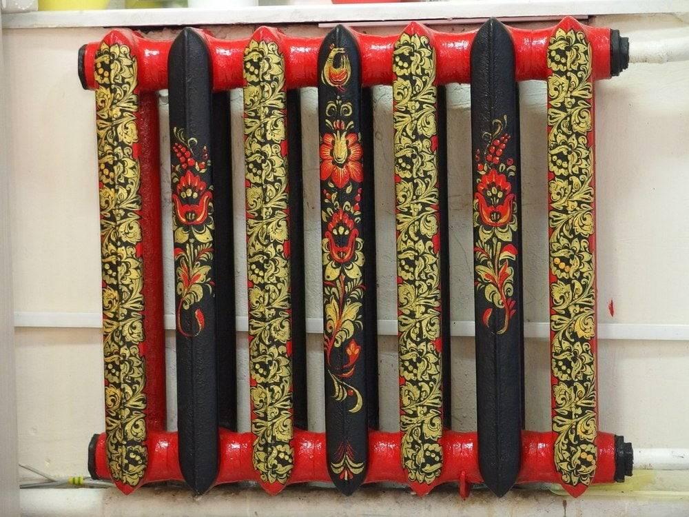 Если вы красиво рисуете, то можно предварительно окрашенную батарею разрисовать различными узорами и цветами.