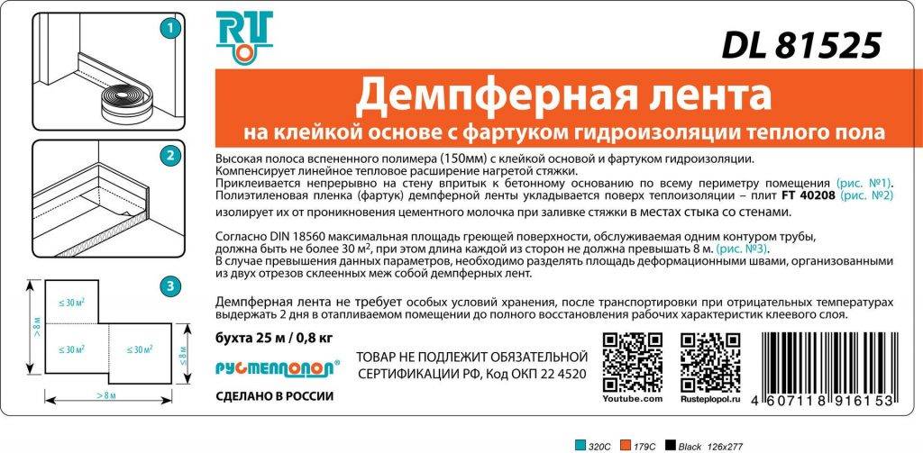 В заключение можно резюмировать: демпферная или кромочная лента является одним из ключевых компонентов в устройстве стяжки и монтаже системы наливного или теплого пола, отвечая за долговечность бетонного покрытия, амортизацию, погашение звуков, шумов, вибрации и сокращение потери тепла сквозь стены здания.
