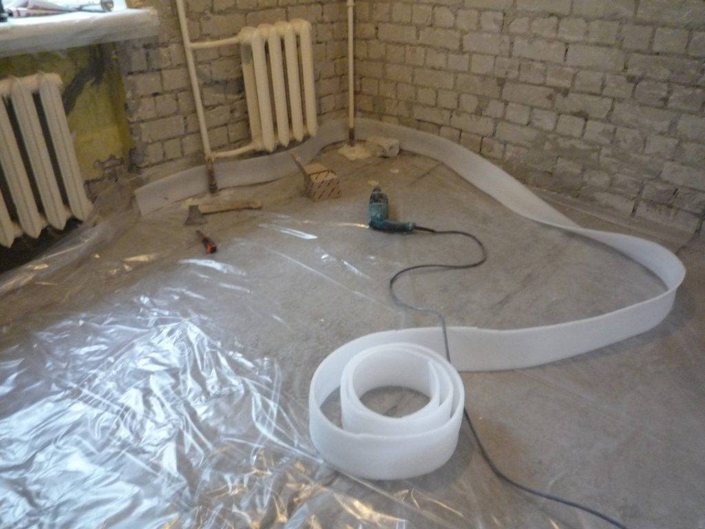 Стяжка пола с применением демпферной ленты