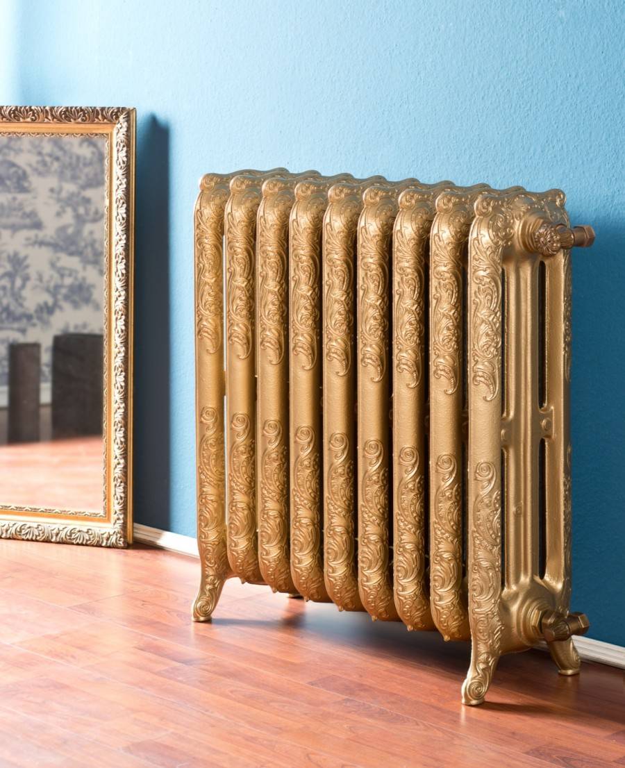 Для установки чугунного ретро-радиатора не требуется специальных креплений, он просто устанавливается на пол.