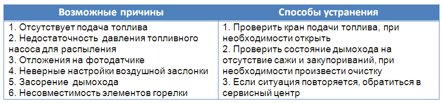 В случае неисправности мигает контрольная лампочка, и на дисплее комнатного термостата-регулятора появляется цифра, обозначающая код неисправности. Это позволяет легко установить причину внештатной ситуации.