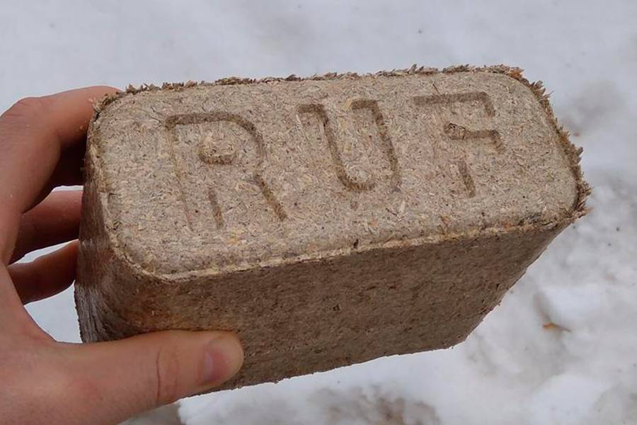 - — Топливные брикеты РУФ. Их производят путем спрессовывания щепы и опил под большим давлением, для скрепления применяют натуральный клеящий состав. Они имеют прямоугольную форму и невысокую цену.