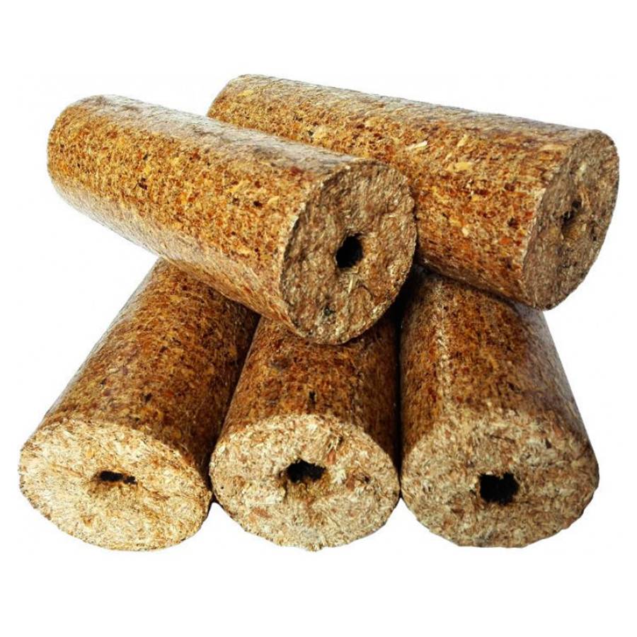 Самый дешёвый вид топливных брикетов – соломенные евродрова. У них низкий коэффициент теплоотдачи. При сгорании они образуют много золы. Редкими, но высококачественными топливными брикетами являются изделия из скорлупы. У них высокая стоимость и красивое горение. Используют их чаще всего для обогрева в каминах.