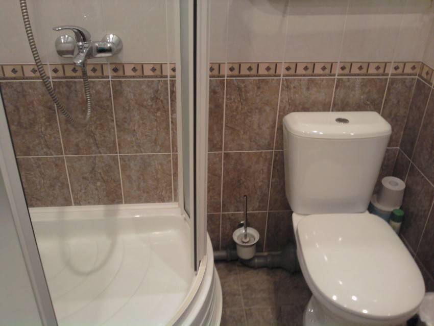 Труднее выбрать место в малогабаритных квартирах. Кроме санузла, установить больше негде, и то он небольшой площади. Убирают ванну, иначе поместить душ не получится. Остается больше пространства для стиральной машины, умывальника, переодевания. Для рационального размещения делают чертеж с указанием размеров помещения и оборудования.