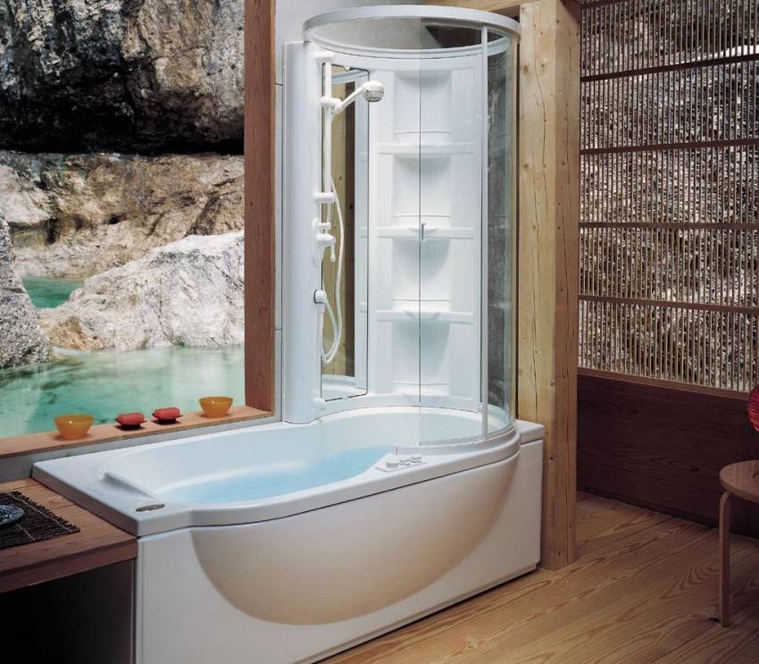 Такие конструкции с матовыми, прозрачными и цветными корпусами устанавливаются на поддоне или на специально подготовленном полу. С одной стороны, они просты и надежны, экономичны в потреблении воды и не требуют специальных навыков от монтажников. С другой стороны, они не предоставляют бесплатный доступ к коммунальным услугам. Они могут быть установлены в нише, в углу или у стены в ванной комнате и украсят любой интерьер помещения.