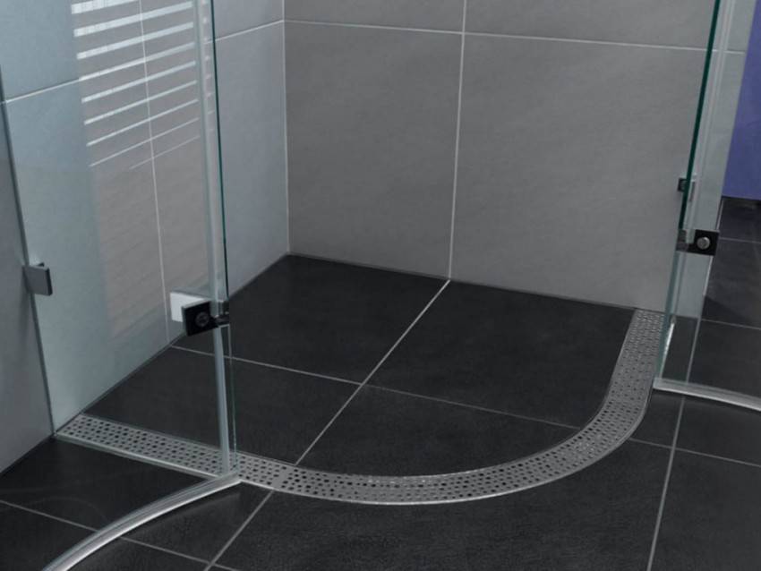 Такие работы лучше производить на этапе формирования стяжки ванной. В это время легче всего вычислить необходимую высоту по всему периметру санузла. Первым делом обустраивается канализация, прокладываются все необходимые коммуникации. Вырезается необходимой длины лоток, который встраивается в стену или пол и надежно крепится к поверхности. После этого устанавливается сифон, и все элементы соединяются между собой.