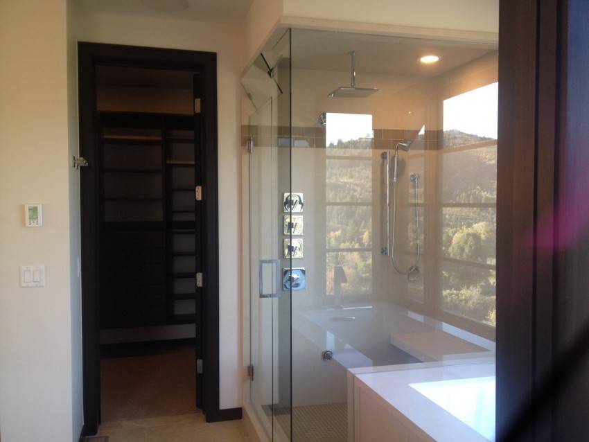 Для больших квартир и частных домов проблем с выбором места нет. Основные требования к размещению — соответствие дизайну интерьера, возможность подвода коммуникаций. Устанавливают, кроме санузлов, в других помещениях. Проектируя дом, предусматривают возможность установки кабины.