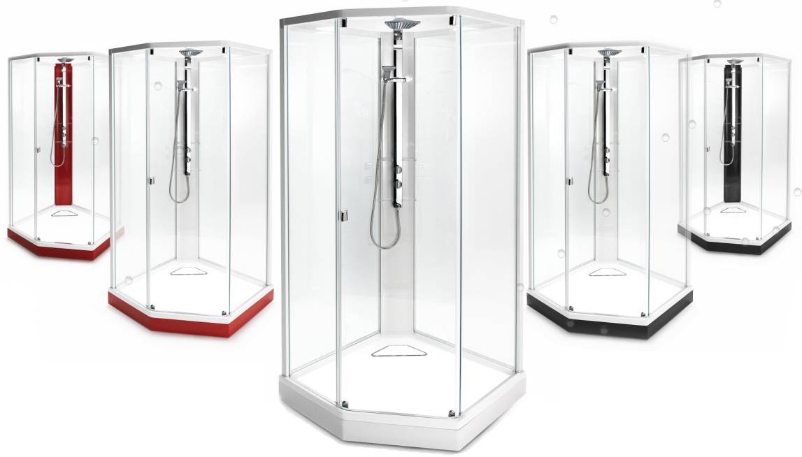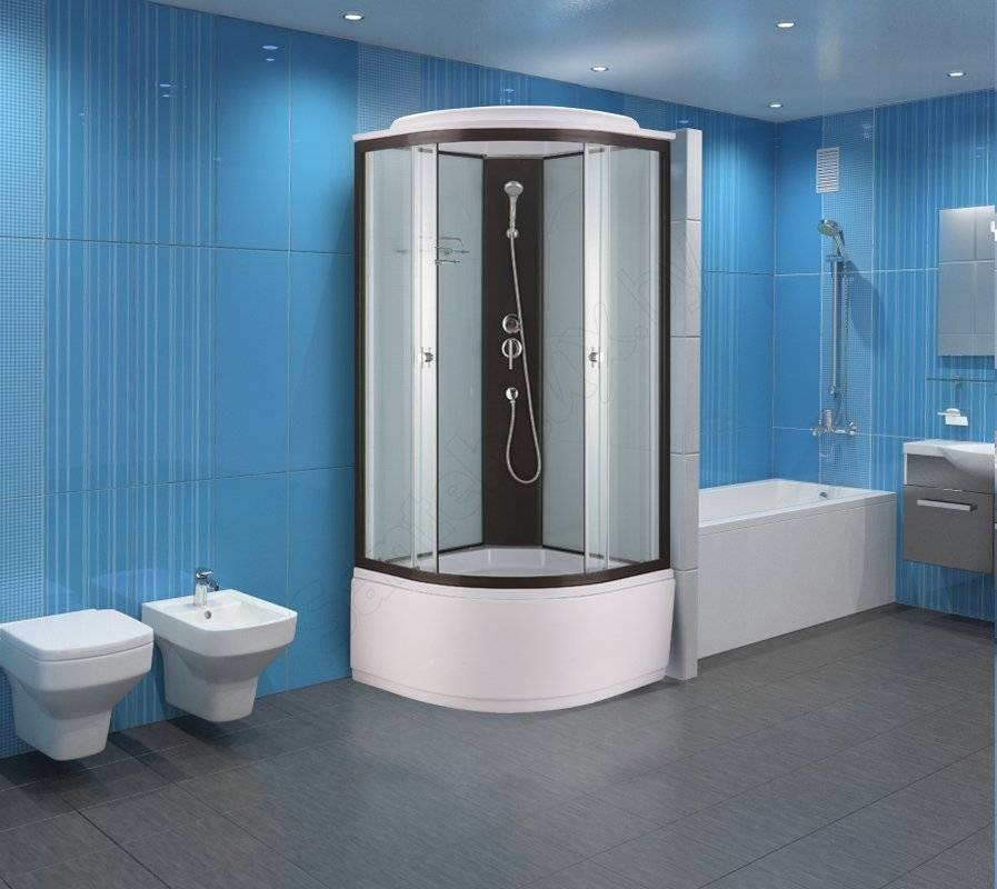 Относится к классическому типу с поддоном в виде одной четвертой круга, имеется полностенное ограждение. Кроме стандартного набора производители предоставляют 3 форсунки с функцией массажа, лейку для тропического душа и принудительную вентиляцию.