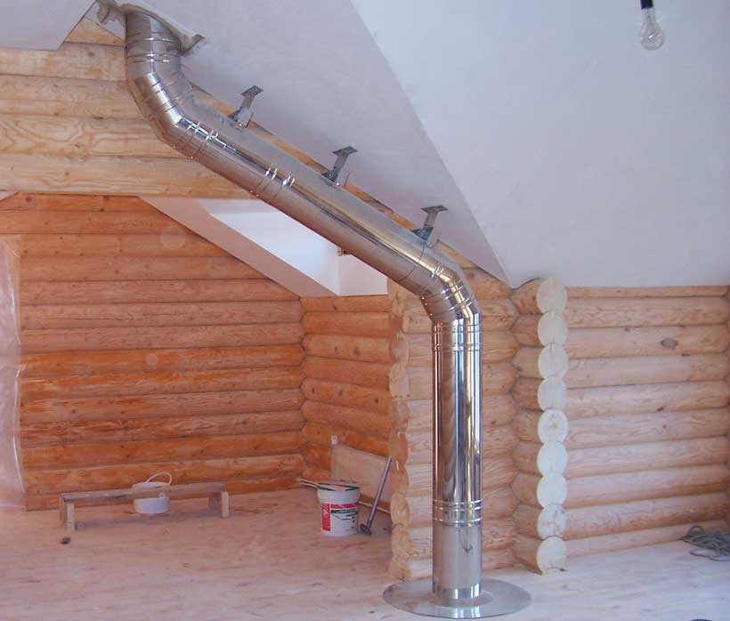 Перед установкой дымохода нужно подогнать все трубы по длине. Получившуюся конструкцию необходимо разместить в заранее подготовленном канале. Далее подключить к системе конденсатор и печку. Финишем считается установка оголовка.