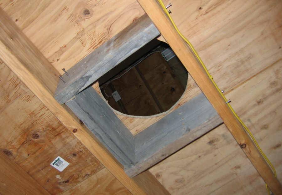 - Создание отверстия в перекрытии или крыше, удаление из него утеплителя.