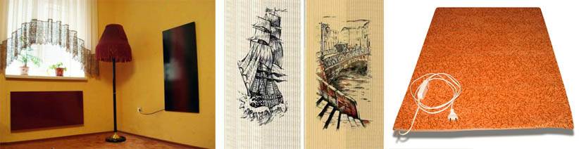 - Эстетичный внешний вид – особенно красиво смотрятся модели в виде картин и настенные обогреватели коврики с нанесенными на них изображениями;