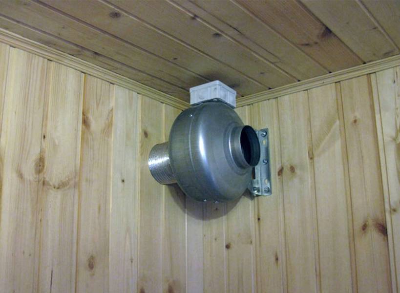 В случае недостаточности естественной вентиляции на вытяжку с бане из пеноблоков рекомендуется ставить вентиляторы.