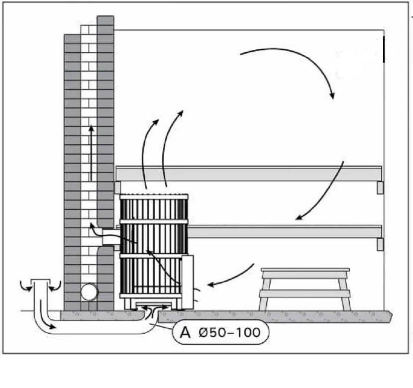 Если печь установлена не в парилке, используется другая схема вентиляции: