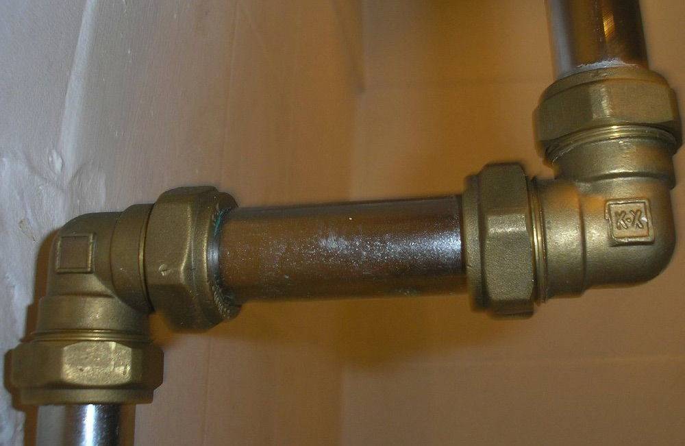 - Металлические трубы соединяются резьбовыми металлическими фитингами, изготовленными из аналогичных материалов (см. Стальные трубы водоснабжения: разновидности, классификация, нюансы монтажа). Однако, бывают исключения. Например, латунные фитинги можно использовать на стальных или чугунных трубах — они довольно прочные и не подвергаются деформации и коррозии. Для медных труб должны применяться только медные фитинги – элементы системы соединяются пайкой.