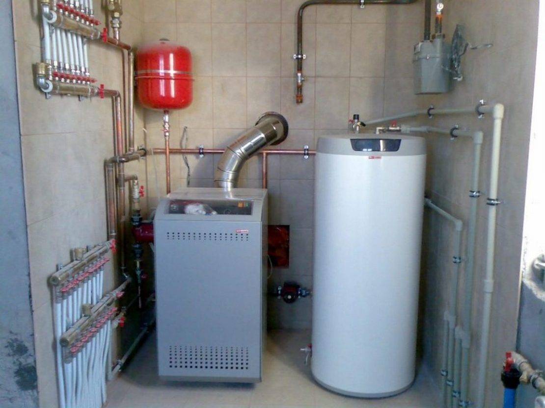 Если котел имеет мощность более 60 кВт, его ставят в отдельное помещение котельной. Котельную можно пристраивать к дому, выносить в рядом стоящее здание. Помещение должно иметь отдельный выход на улицу, окно размером в 0,3 м2 на каждые 10 м3 объема пространства. Площадь котельной не менее 4 м2, высота стен от 2,5 м. В котельную проводится система вентиляции, прокладывается трубопровод холодного водоснабжения и канализации, формируется дымоход для отвода продуктов горения.