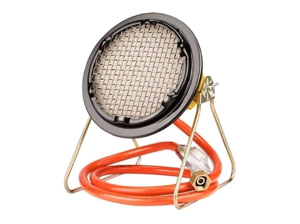Важной особенностью данного прибора является крутящаяся на ножках горелка с сеткой. Благодаря этой функции, ее можно поставить в горизонтальное положение и использовать обогреватель как плитку для приготовления пищи, что и делает модель незаменимым «товарищем» в походе и на рыбалке. Приятным бонусом станет то, что в комплект уже входят шланг длиной 1,5 метра и редуктор