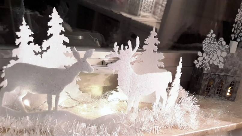 Помимо елочек, будут актуальными и олени. А если добавить имитацию снега с помощью ваты или дождика, получится сказочный зимний лес.