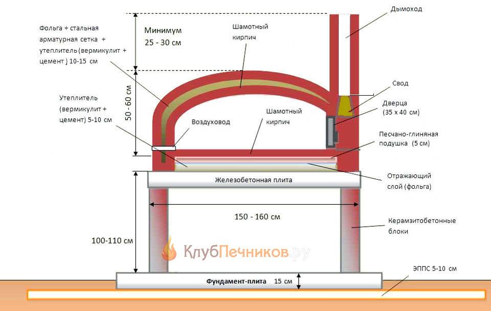 Давайте рассмотрим схему постройки помпейской печи: