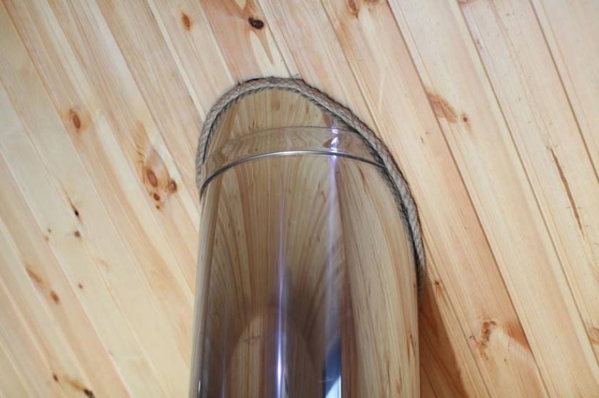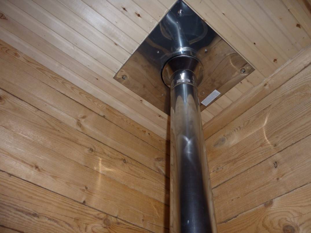Ответ на это вопрос достаточно прост. В условиях бани отвод дымохода обустраивается точно таким же образом, однако в этом случае к его изоляции предъявляются повышенные требования, а именно: