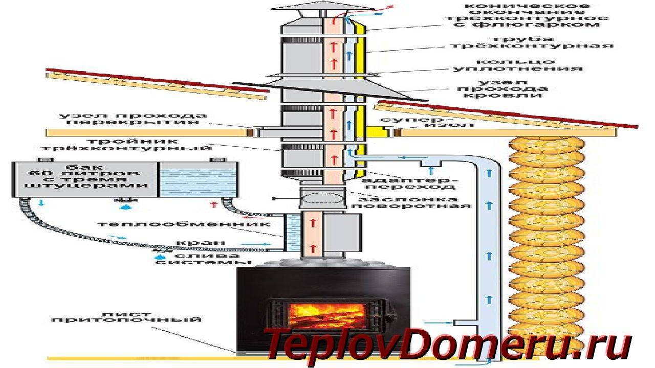 Точная схема монтажа дымохода сэндвич зависит от габаритных размеров трубы, необходимых для нормального вывода дыма