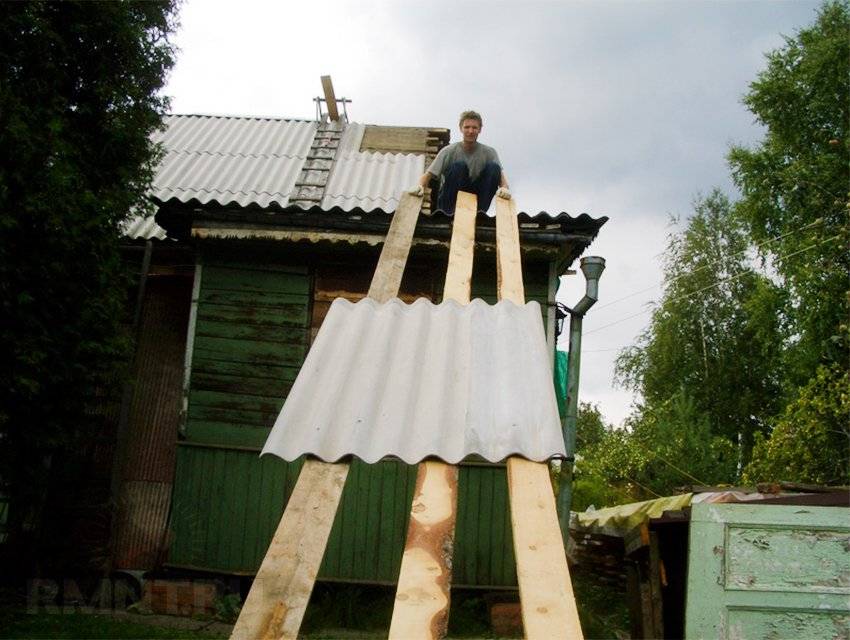 Именно по этой причине передвижение по шиферной кровле должно осуществляться максимально осторожно.