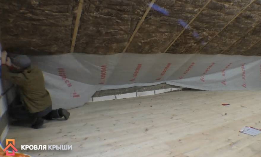Полотно пароизоляции накладывают на материал со стороны жилого теплого помещения