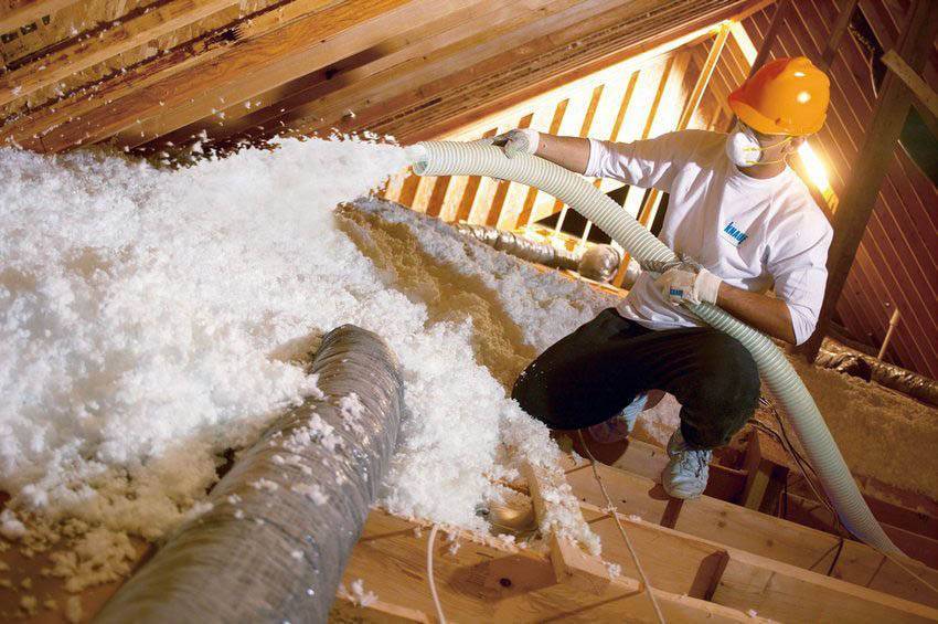 Эковату применяют для теплоизоляции чердака достаточно часто – материал хорошо себя зарекомендовал, хотя и требует для напыления спецтехники.