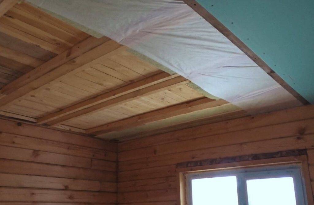 После завершения работ по выкладке изоляции, поверхность потолка зашивается листами ГКЛ, вагонкой или другими материалами.