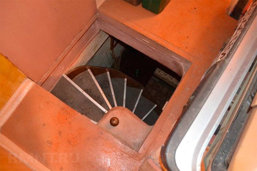 Если имеется возможность, спускную горловину желательно расширить до 100–120 см, чего будет достаточно для устройства простейшей винтовой лестницы из металла. Этого могут не позволить размеры помещения, но мало что помешает вам сделать одну из стен горловины наклонной. Речь о стене, противолежащей лестнице, в идеале она должна иметь тот же уклон. Не забудьте, что с набором глубины можно перейти на более пологие бетонные ступени, почти всегда есть место для небольшой площадки. Не поленитесь закрепить на наклонной стене несколько поручней или скоб — так не придётся спускаться вперед спиной.
