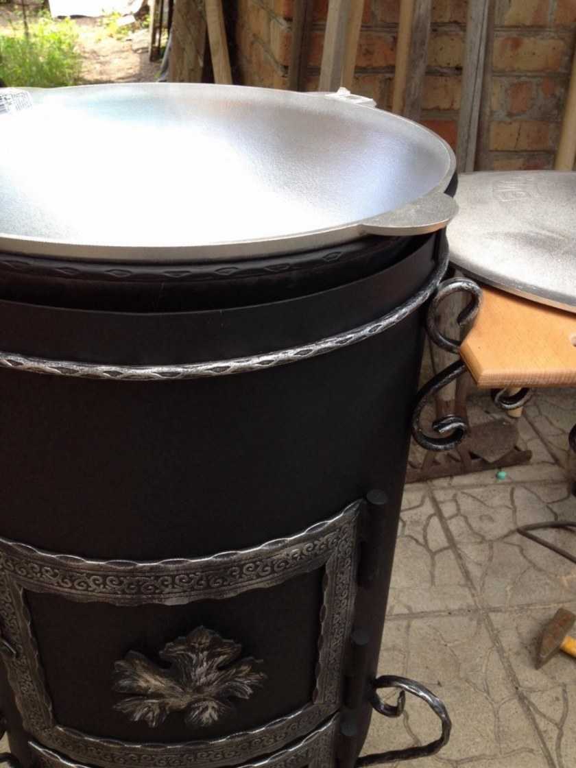 В продаже есть немало заводских недорогих моделей, но это как раз тот случай, когда можно обойтись своими силами и почти гарантированно добиться успеха. Сделать железную печь под казан своими руками можно из любого цилиндрического предмета, скорее всего, не понадобится даже сварка.