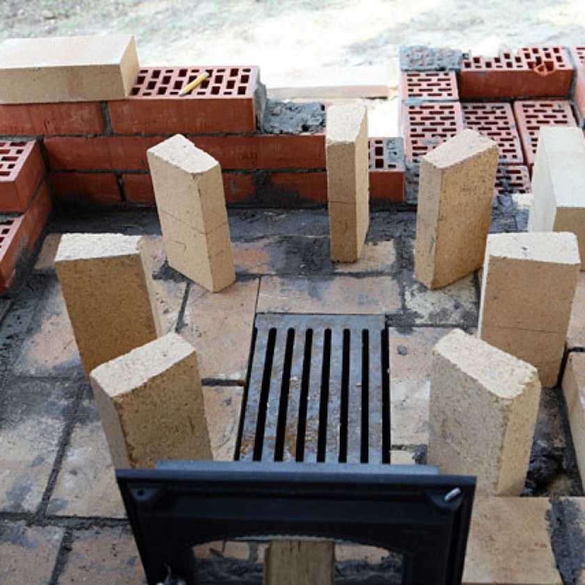 - Используя распиленные огнеупорные кирпичи, выкладывается основание футеровки.