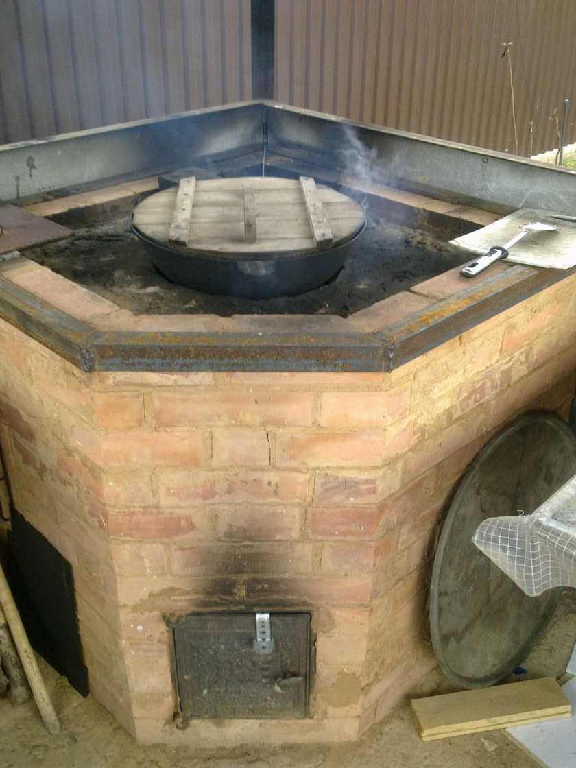 - Желательно, чтобы отверстие было правильной формы и с ровными краями. Тогда казан будет прилегать к ним достаточно плотно, не давая дыму просочиться в зону приготовления пищи.