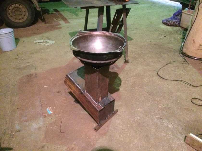Также стоит изготовить опору, это может быть подставка под казан своими руками, благодаря которой приготовление кулинарных шедевров будет в разы удобнее.