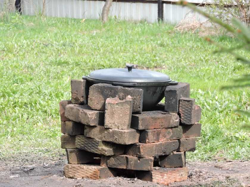 Для поездок или редкого использования лучше послужат тонкостенные, разборные очаги. Они занимают мало места, достаточно долго служат при редком применении, легки. Но к частому приготовлению пищи на них малопригодны. Для металлических или чугунных видов желательны ножки. Пламя очага, находясь выше уровня земли, будет лучше прогревать всю поверхность котла. Кроме того, не понадобится каждый раз низко наклонятся.