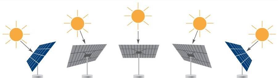 - При установке батарей на открытой площадке, для более высокой эффективности их работы, систему часто снабжают специальным фотоэлементом, реагирующим на положение Солнца, и поворотным механизмом, который будет поворачивать их вслед за движением светила. Эффективность повышается, но зато возрастает сложность системы и стоимость реализации проекта.