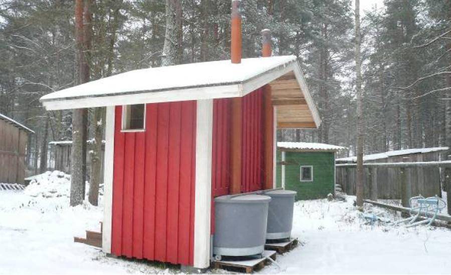 Рис.43. Емкость с отходами у финского туалета располагается под кабинкой.