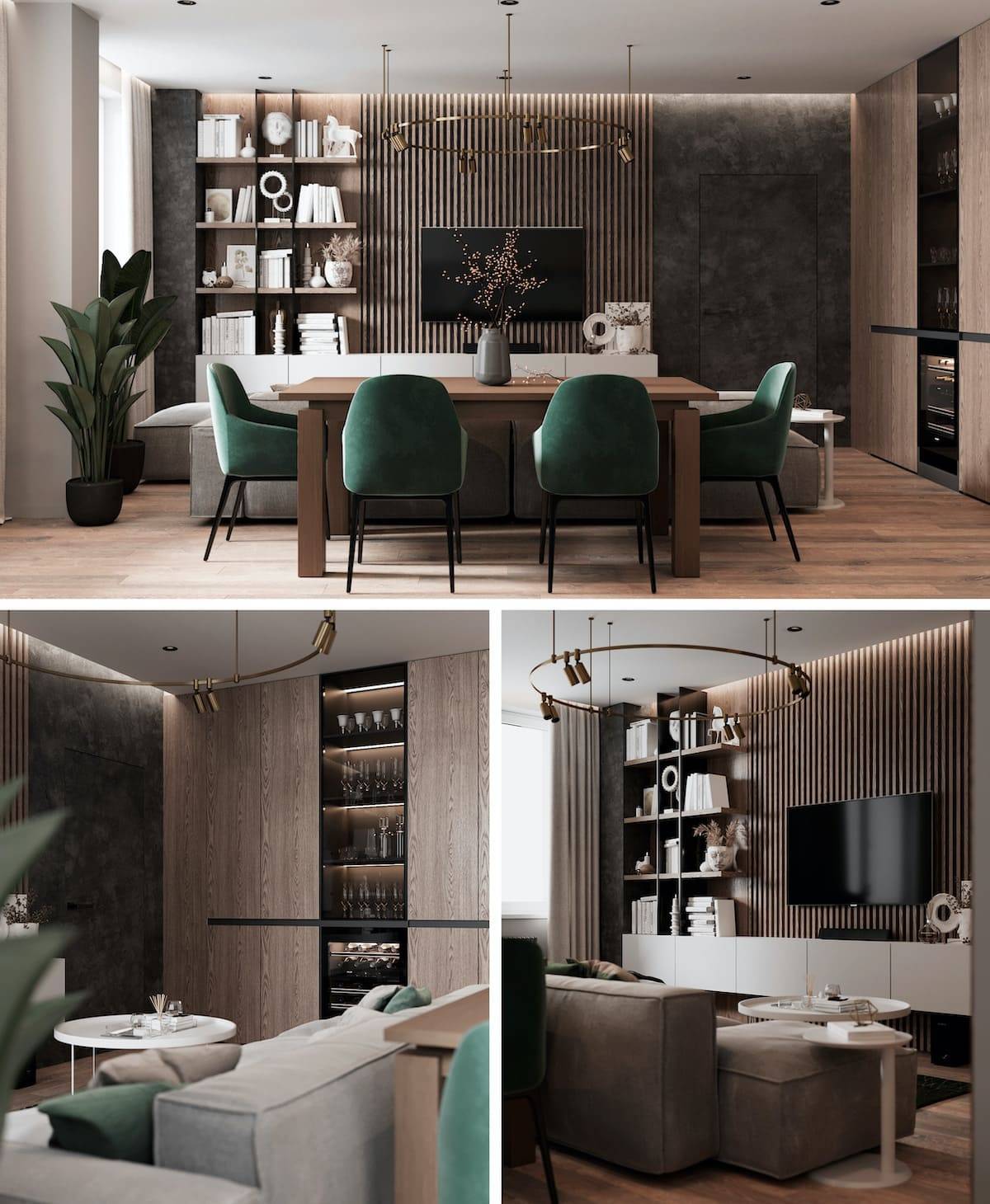 И говоря о неподвластных времени металлических акцентах, блеск по-прежнему присутствует в дизайне гостиной в наступающем 2022 году. Добавляя намек на гламур и роскошь, добавляя бронзовые, золотые и хромированные металлические элементы и детали, такие как декоративные элементы, обои, мебель, зеркала и аксессуары очень созвучны настроению современного дизайна.