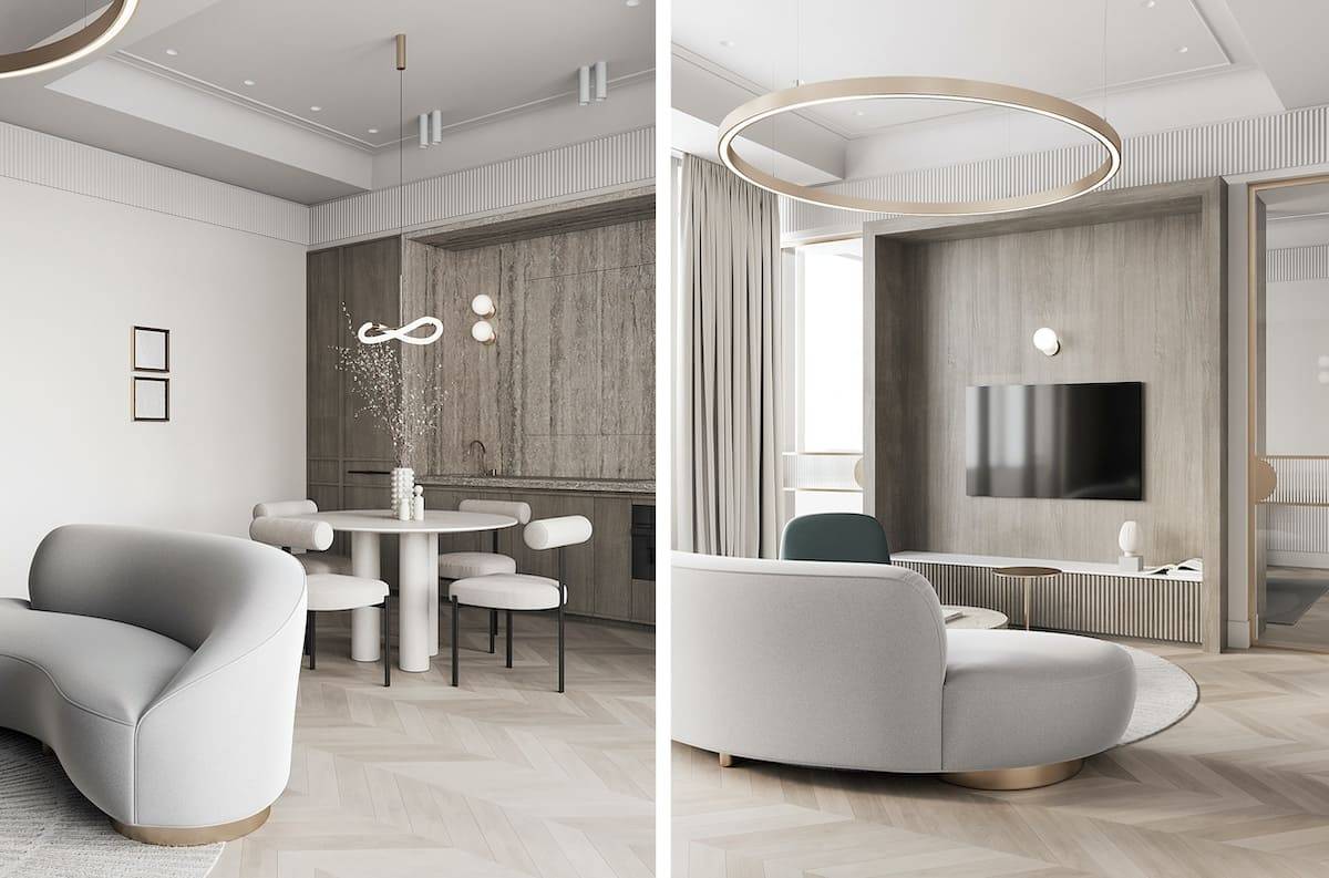 Гармоничная комбинация классического и современного стилей. Эклектичный сборник двух основных направлений в дизайне интерьера.