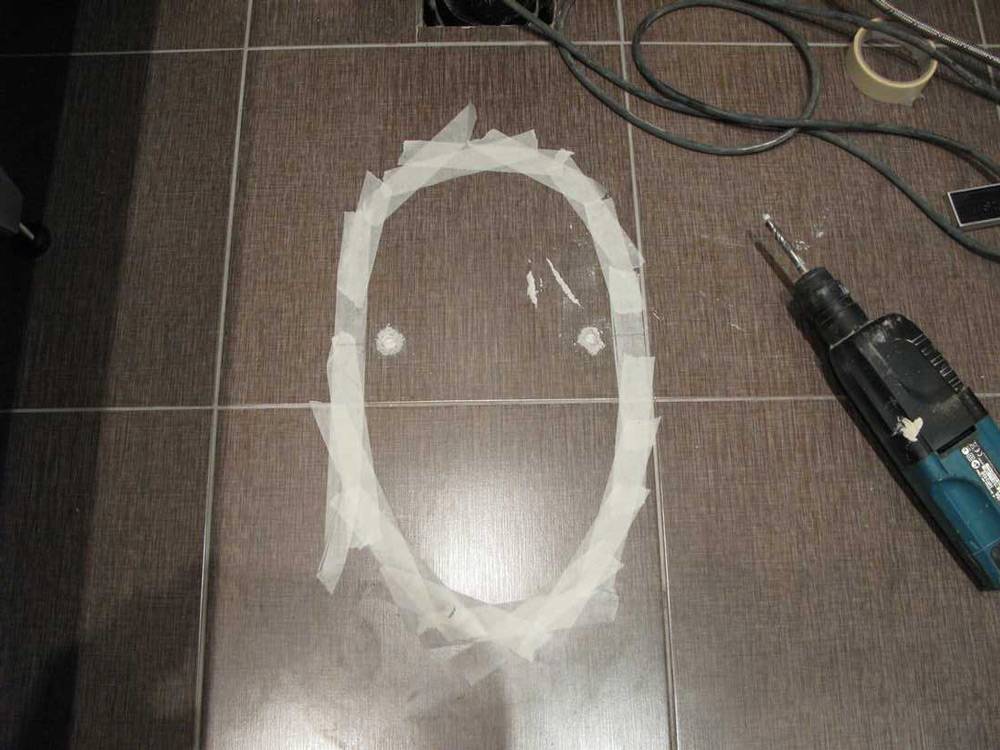 Разметка контура дна унитаза на плитке