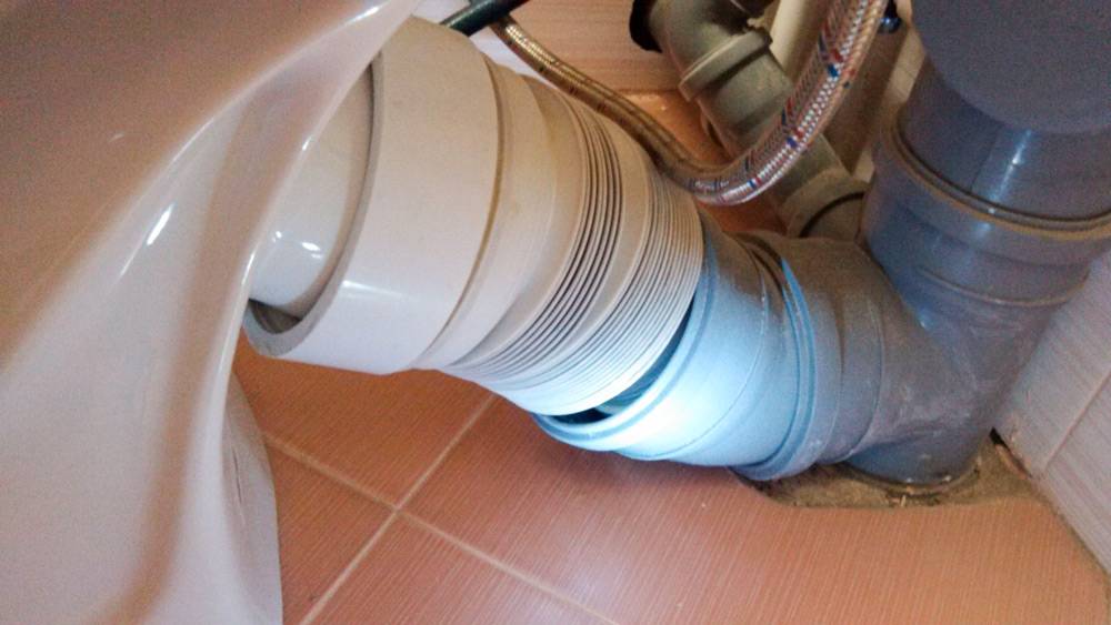 Сантехника, соединенная с канализацией резиновой манжетой