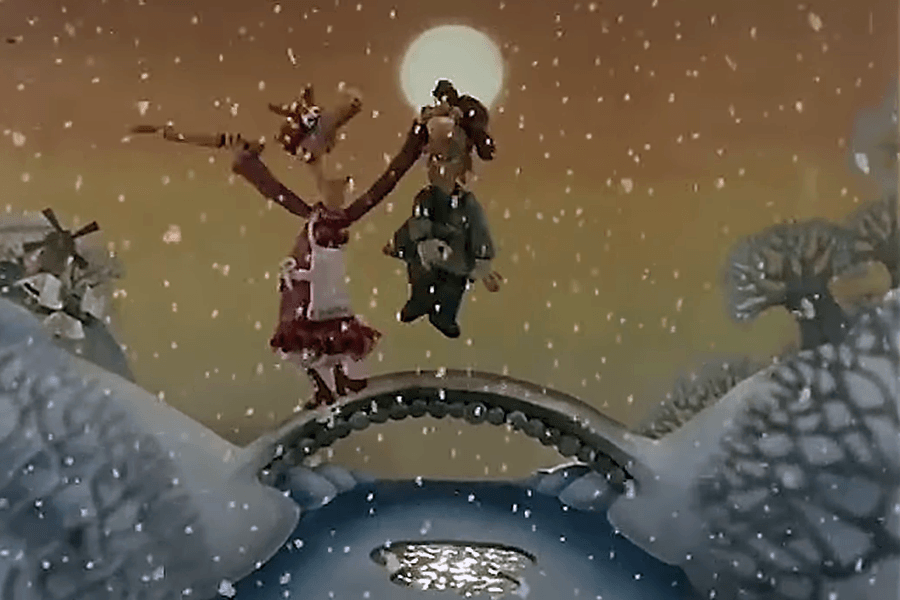 В СССР очень любили экспериментировать с необычными мультфильмами. «Падал прошлогодний снег» — уникальный пластилиновый мультфильм, 20-минутная история про мужичка, который пошел под Новый год рубить елку. В истории много абсурдного юмора, отсылок на русские народные сказки. Есть даже «модный прием» — слом четвертой стены.