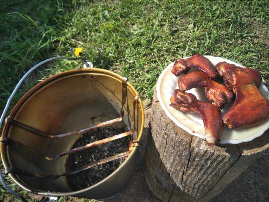 При этом совершенно не важно, что одновременно будут коптиться свиная колбаска, кусок медвежатины, оленьи рёбрышки, куриные полутушки и пара-тройка трехкилограммовых лещей. На вкусовых качествах это не скажется