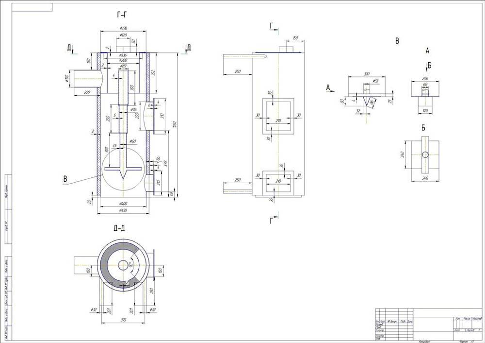Для реализации частных проектов не обязательно соблюдению ГОСТов. Но чем подробнее получился чертеж твердотопливного котла длительного горения своими руками, тем проще будет исключить ошибки на ранних стадиях.